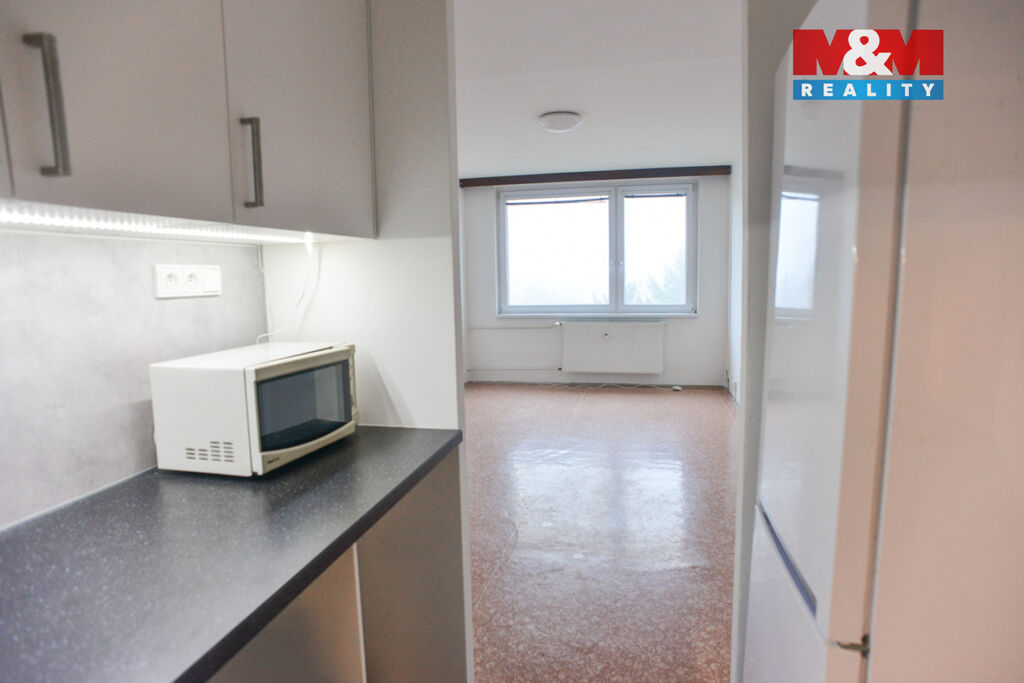 Nabízím k dlouhodobému pronájmu světlý, částečně zařízený byt dispozice 2+kk (42 m2) v 3. nadzemním podlaží třípodlažního panelového domu bez výtahu. Dům je zateplený s centrálním plynovým kotlem. V bytě je kuchyňská linka se spotřebiči (trouba, varná indukční deska, digestoř, mikrovlnka, lednice s mrazákem) a s přípravou pro pračku a myčku. Nedávno zrekonstruované jádro má koupelnu se sprchovým koutem a oddělený záchod. K bytu náleží sklepní kóje o velikosti cca 1,5 x 2,5 m. Byt je orientován na východ.