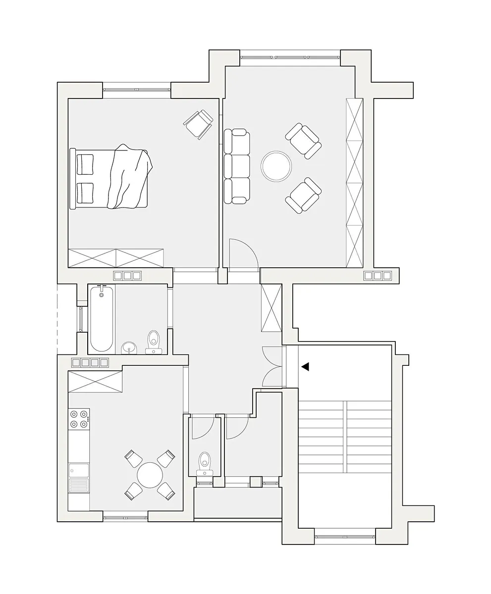 Bytová jednotka o dispozici 3+kk a celkové podlahové ploše 89,7 m² se nachází ve 3. nadzemním podlaží čtyřpodlažního bytového domu v širším centru Pardubic na ulici Svobody. K jednotce náleží lodžie o velikosti 2,1 m² orientovaná na jih a sklepní prostor o výměře 14,8 m².