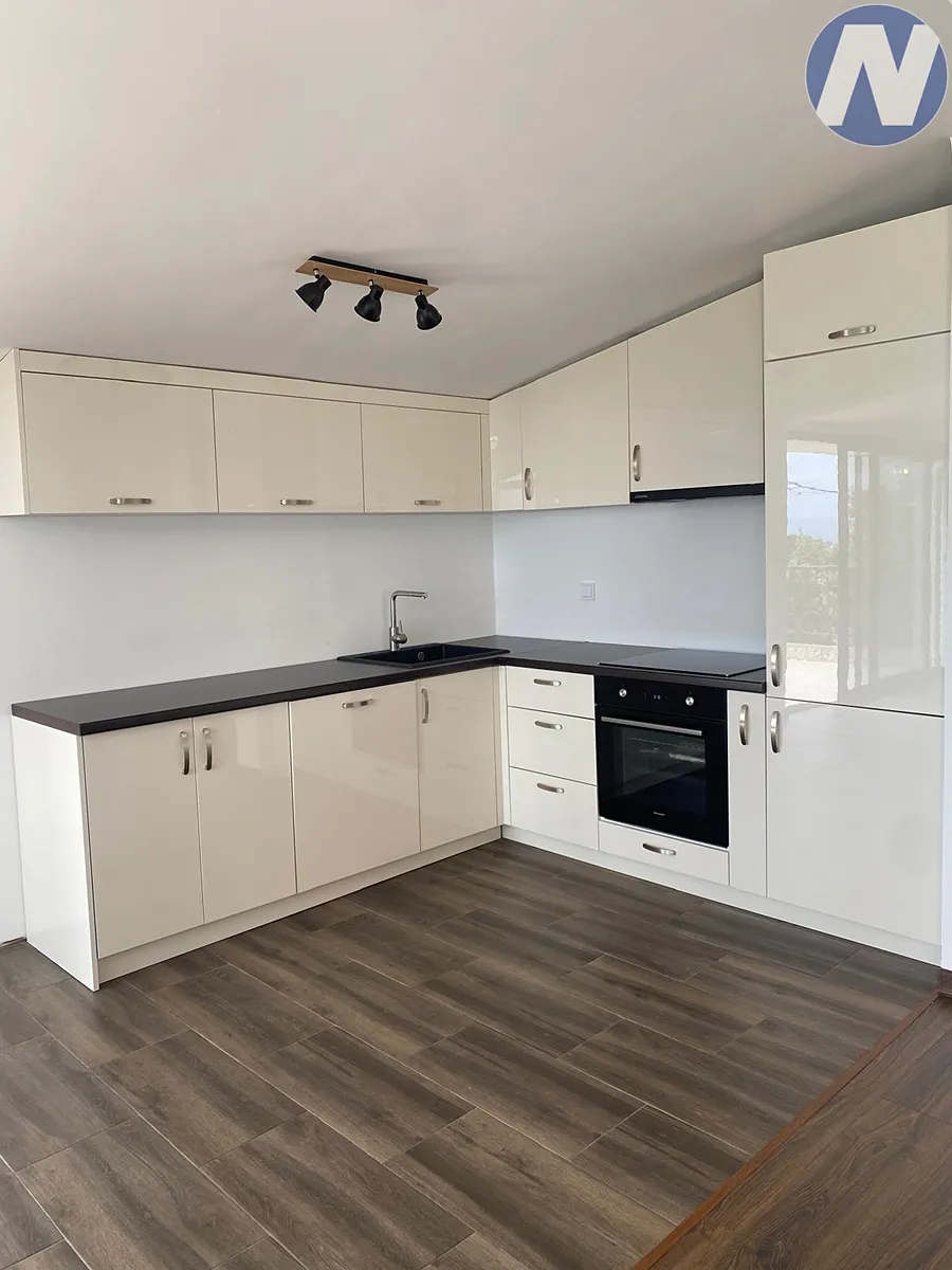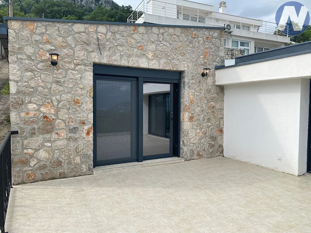 Ve druhém patře se nachází obývací pokoj, kuchyň s jídelnou, koupelna s výhledem na moře, prostorná terasa u jídelny, úložný prostor.
