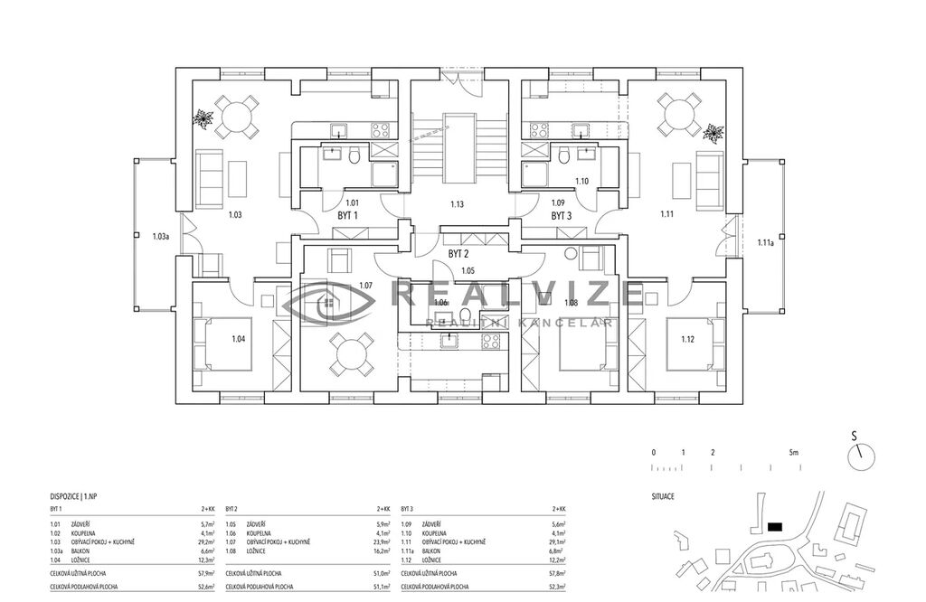 Pouze jeden byt je plně vybavený, ostatní jednotky jsou připraveny v prověřeném standardu Shell & Core – tedy dokončené po stavební stránce s připravenými rozvody, koupelnami a kuchyňskými přípojkami, ale bez finálního vybavení.