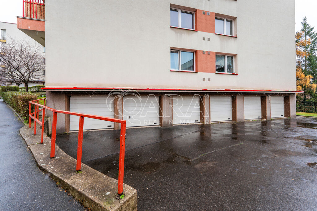 K bytu je možné dokoupit garáž pro jedno auto (přímo v domě) s automatickými vraty. Cena je 1,3 mil. Kč.