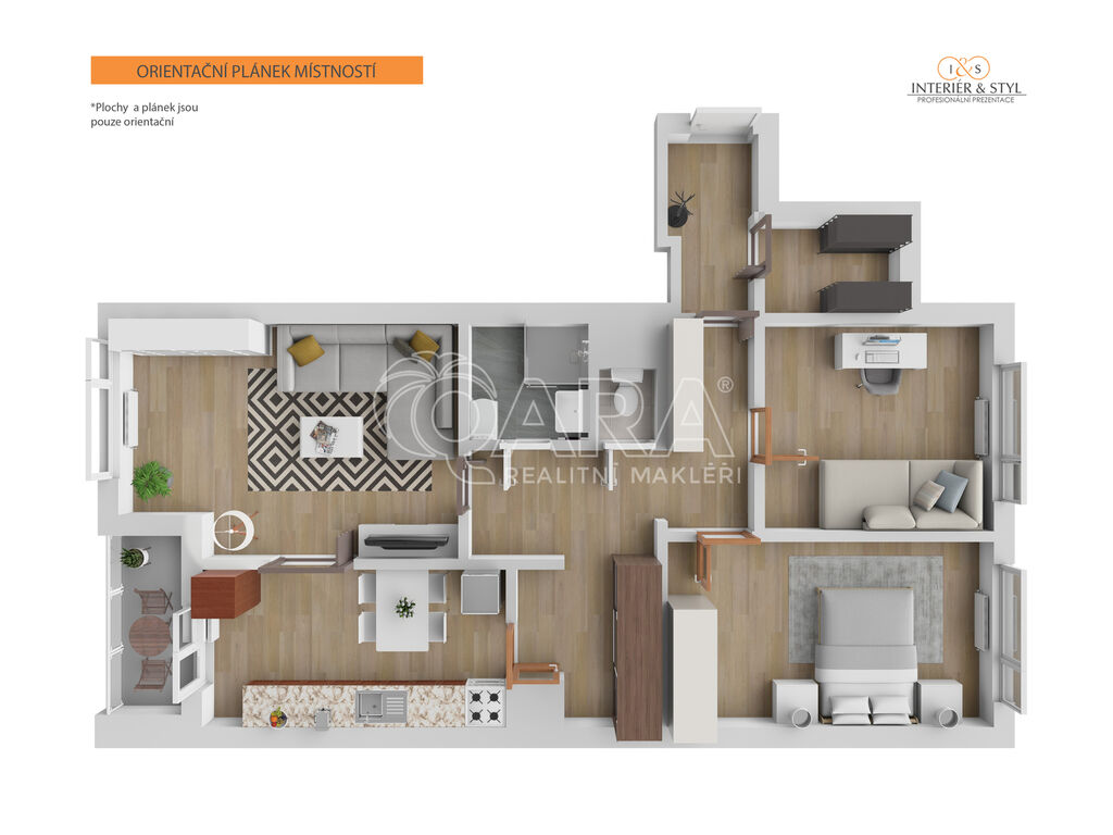 Úložné prostory: V ložnici a na chodbě jsou praktické vestavěné skříně. K dispozici je také prostorná komora přímo v bytě.
