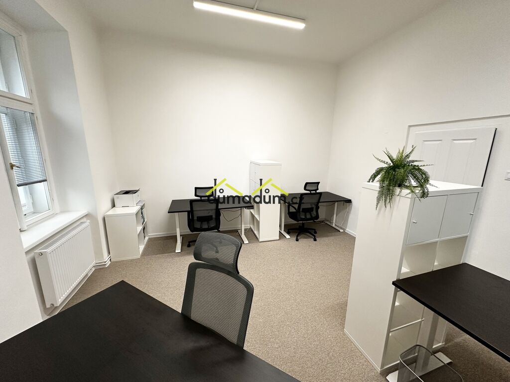 • 3 samostatné neprůchozí místnosti — vhodné jako pracovní kanceláře a jednací místnost