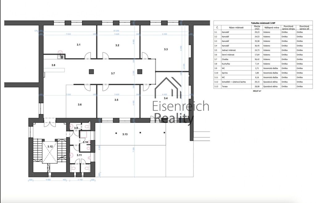 5 samostatných kanceláří vhodných pro menší i větší pracovní týmy