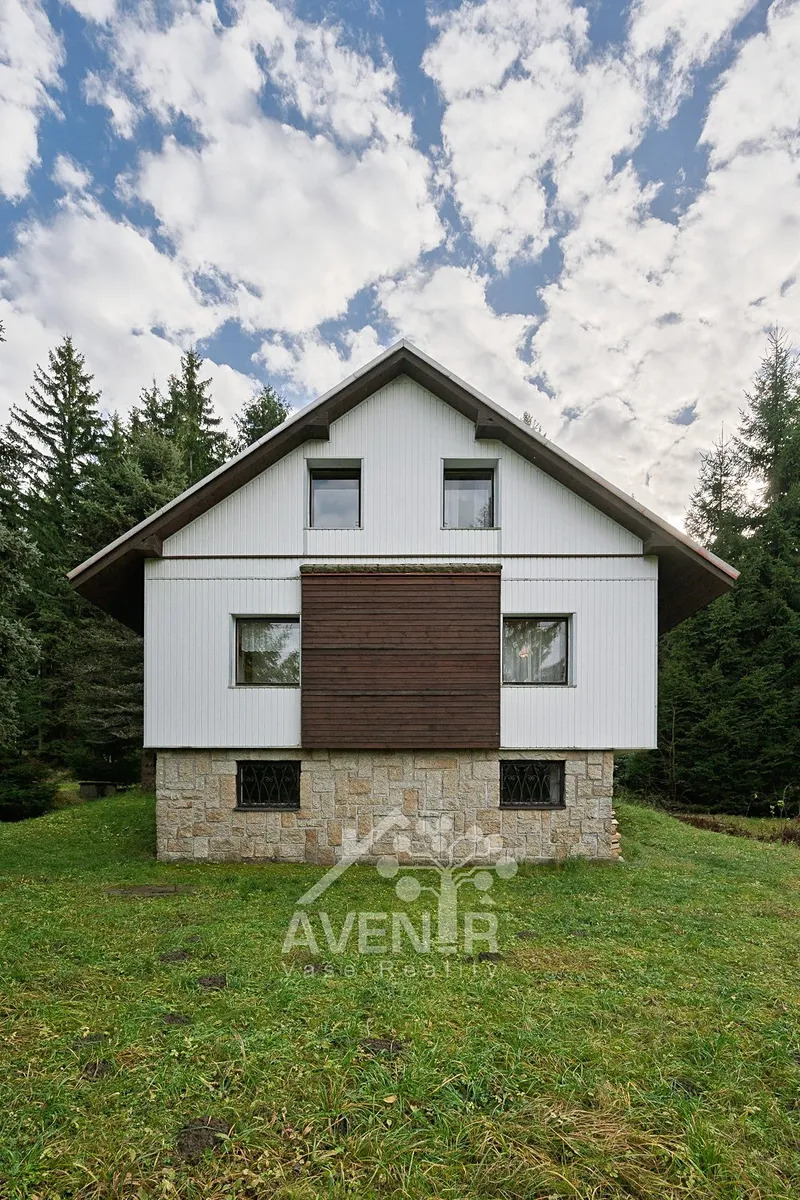 Ve výhradním zastoupení majitele prodáváme rodinný dům / chalupu na "samotě u lesa" s garáží na okraji obce Nová Ves nad Nisou. Dům byl postaven v roce 1992 a kolaudován v roce 2008, je smíšené konstrukce (kámen, beton, cihla). Střecha je z hliníkových plechů. Dům má dispozici 5+1 + garáž + 2 šatny + další 3 sklepní prostory, podlahová plocha je cca 192 m2. Okna jsou dřevěná s jednosklem dvojitá. Podlahy kombinované, dva komíny. Chalupa je vzdálena 13 min. (9 km) od Ski areálu Tanvaldský špičák.