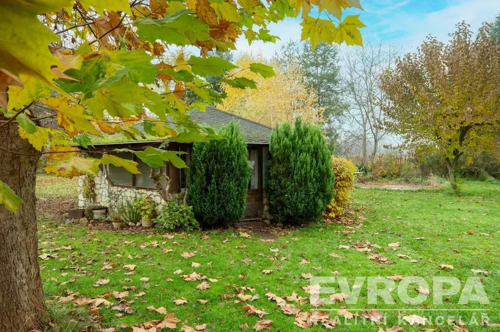 Rozloha pozemku je 3 665 m², z toho zastavěná plocha 334 m². Prostorná okrasná zahrada je oddělena uzavřenou automatickou bránou. Menší část prostranství je situována před budovou, oddělena od komunikace automatickou závorou, a je ideální jako parkování pro zákazníky a pro venkovní posezení (restaurace, cukrárna), čímž je zajištěna komerční viditelnost. Mnoho desetiletí udržovaná okrasná zahrada s potůčkem přidává nemovitosti půvab, soukromí a poskytuje odpočinkové zázemí, dominují zde vzrostlé okrasné dřeviny (nádherný platan, břízy, jehličnany), skrývá také unikátní prvek protéká jí potůček vytvářející uklidňující atmosféru, k relaxaci a setkávání slouží útulný zahradní altán. Balkóny umožňují obyvatelům vychutnávat si klidné okamžiky s panoramatickými výhledy do vlastní zahrady a na údolí řeky Berounky, obzory Chráněné krajinné oblasti Český kras.