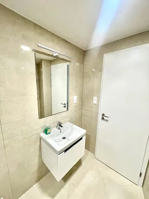 V bytové jednotce po kolaudaci ještě nikdo nebydlel a k pronájmu se nabízí částečně vybavená, včetně sklepu (3,3 m2) a garážového stání, které není zahrnuto v ceně nájmu.