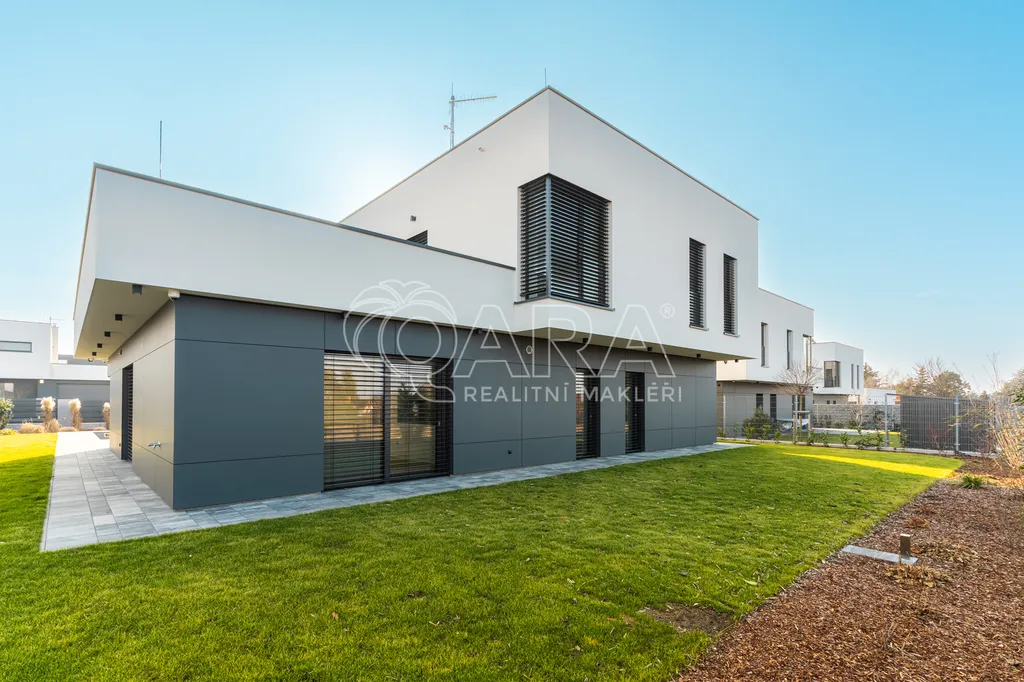 Zahrada s relaxačními zónami a možností posezení, samozavlažovacím systémem, robotickou sekačkou. Prostorná garáž pro několik vozidel a dostatek venkovních parkovacích míst. Vila je částečné zařízená a ihned k dispozici.