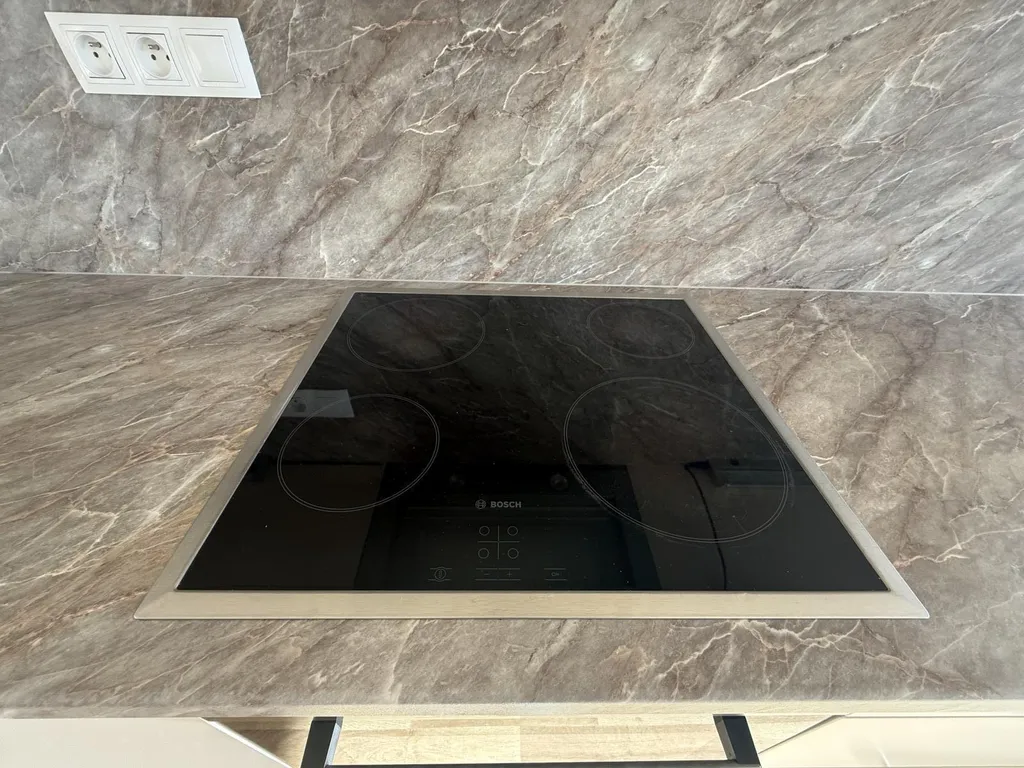 Součástí vybavení kuchyňské linky je: sklokeramická varná 4 plotýnková deska, el. trouba, digestoř, mikrovlnná trouba. Lednici nutno mít svoji vlastní, příprava na myčku je.