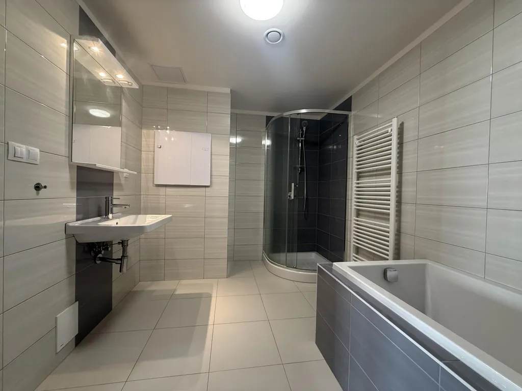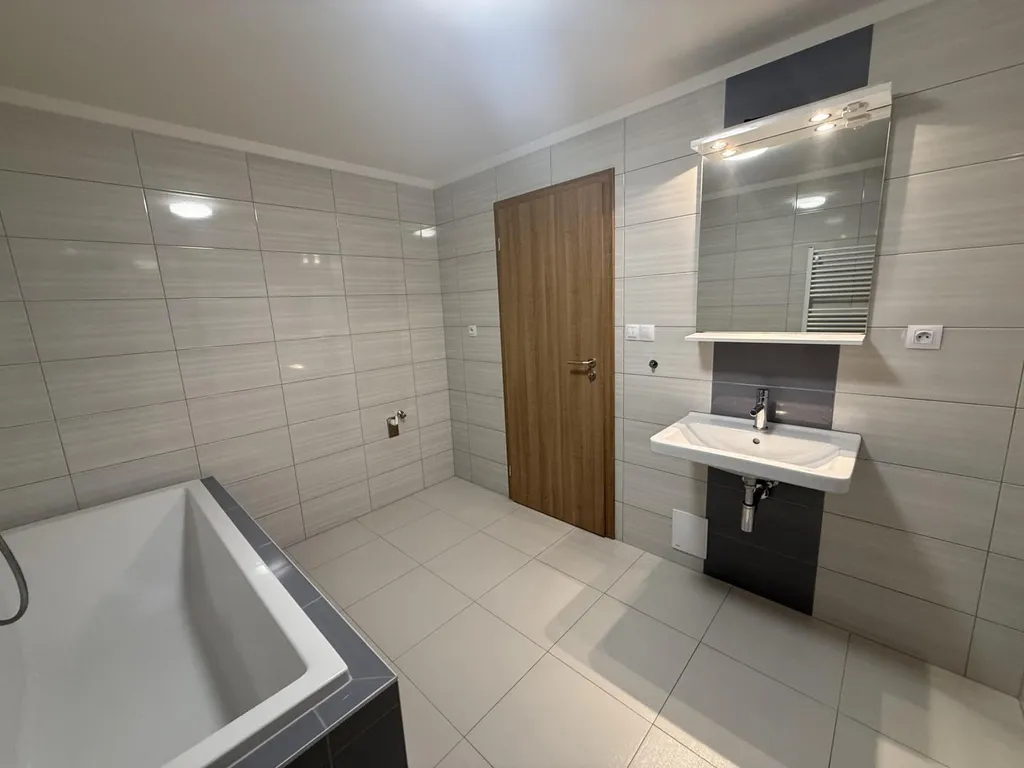 V koupelně se nachází jak sprchový kout, tak i vana. Pračku nutno mít vlastní. Samostatná toaleta.