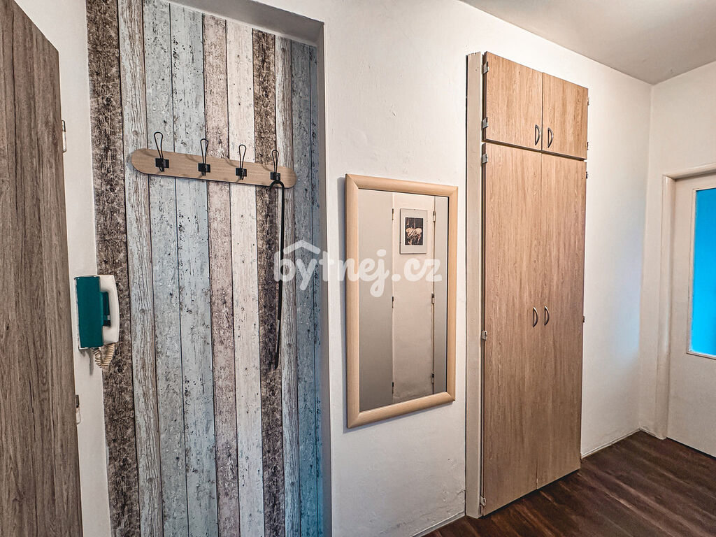 Byt se nachází v 2. podlaží (bez výtahu) s výměrou 40 m². Sestává ze vstupní chodby, koupelny , WC. Dále v kuchyni se spotřebiči a obytného pokoje.