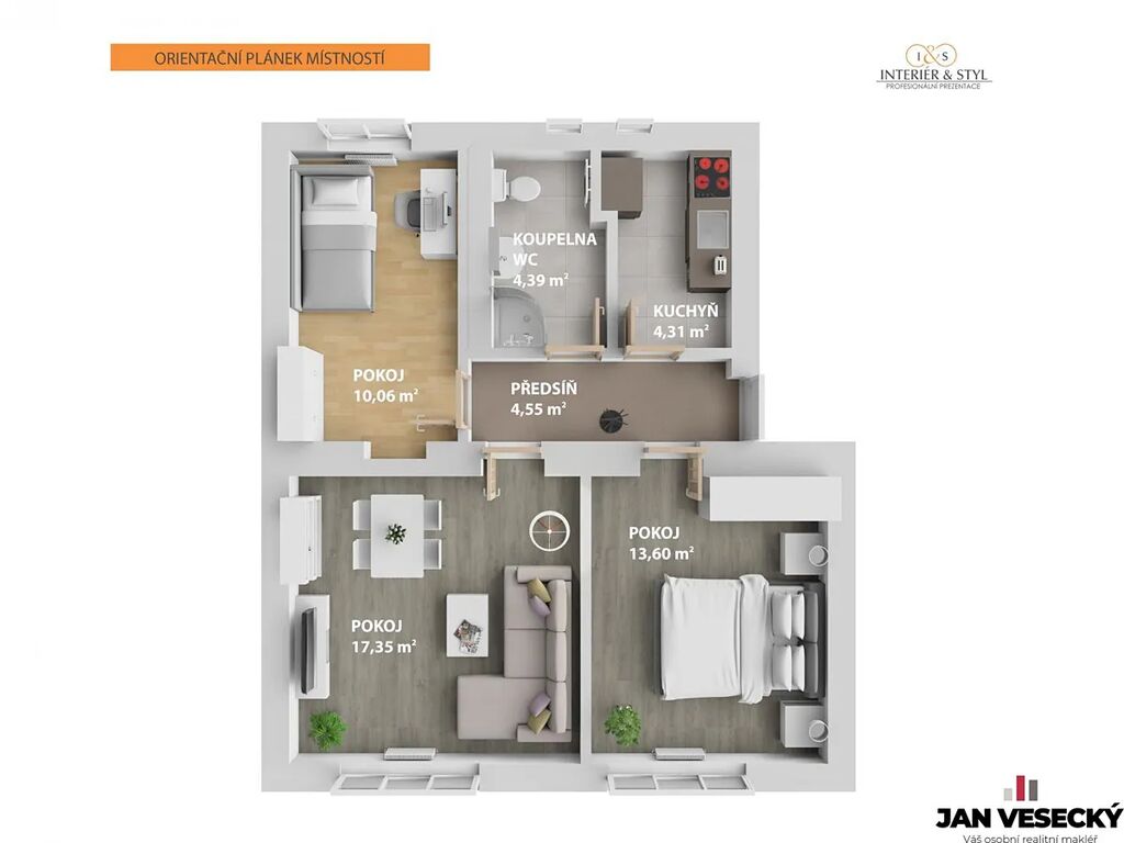 V zastoupení městské části Praha - Čakovice, bych vám rád nabídnul pronájem obecního bytu o dispozici 3+1 o celkové užitné ploše 64,63 m2. Čistá podlahová plocha bytu je 54,26 m2, ke kterému náleží ještě zděný sklep o velikosti 10,37 m2. Byt je umístěn ve 2.NP (1.patře) cihlového domu bez výtahu na adrese U Párníků 701/9. Konkrétní dispozici a výměry jednotlivých místností naleznete v přiloženém 3D půdorysu.