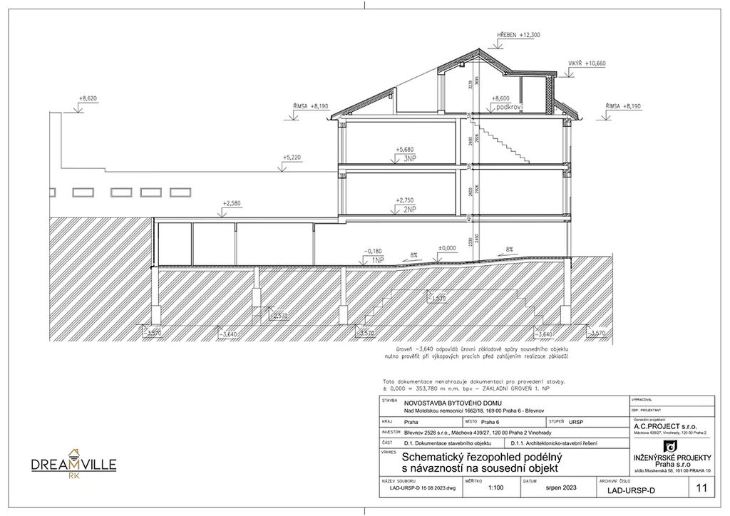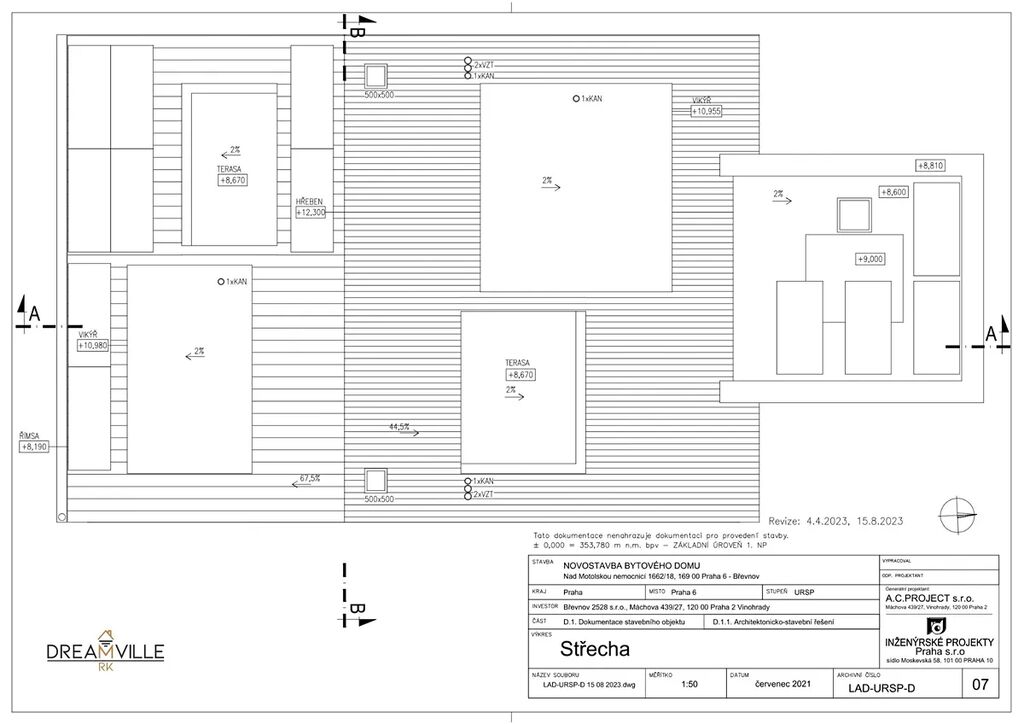 Dovolujeme si Vám nabídnout k prodeji projekt na výstavbu bytového domu nacházející se v klidné části Břevnova. Jedná se o projekt se stavebním povolením na výstavbu čtyř bytových jednotek, každá byt bude mít své parkovací stání v garáži a sklep. Bytový dům bude vybaven výtahem a je navržen s ohledem na bezbariérový přístup.