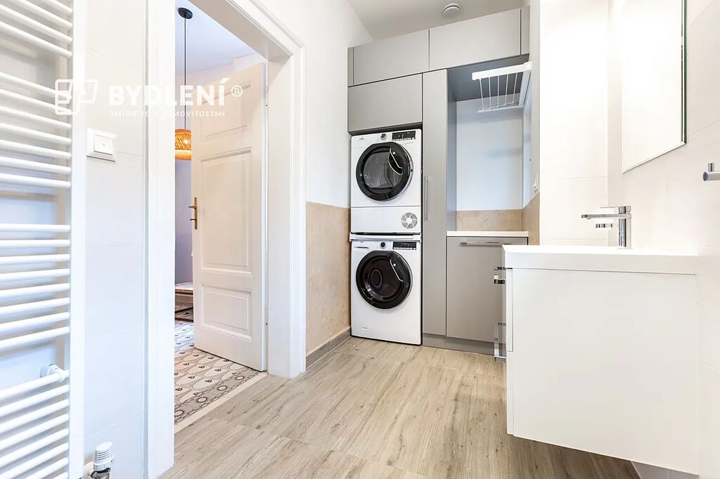 Celý dům působí spíše jako menší privátní rezidence než klasická bytovka. Společné prostory prošly renovací pod dohledem historiků – od opravené původní dlažby až po reprezentativní chodby s broušeným kamenem z Verony. V suterénu najdete čisté, upravené zázemí, které je v domě dlouhodobě udržováno jako rodinné prostředí.