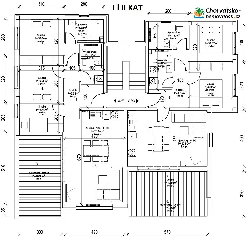 Chorvatsko-Nemovitosti.cz má pro Vás na prodej nový čtyřpokojový apartmán (A2) o celkové rozloze 84,32 m2 v prvním patře kvalitní novostavby v Novalji, pouhých pět minut chůze od pláže Babe.