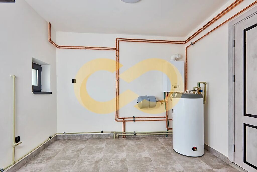 Dům prošel kompletní rekonstrukcí. Je tu nová elektřina, voda i topení a nákladů na provoz se bát nemusíte – stavba je nově zateplená a okna mají izolační trojsklo. O vytápění se stará plynový kotel a o ohřev vody bojler. Kanalizace je obecní.