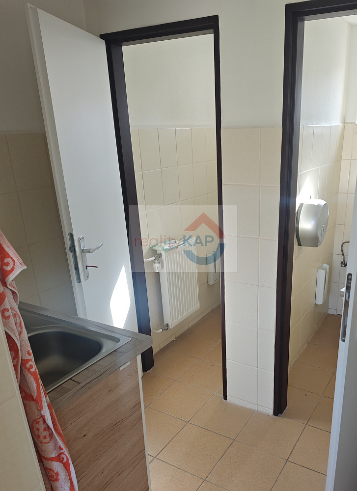Pronajmeme prostory vhodné jako kanceláře nebo zázemí pro administrativu a služby v 1. patře budovy s vlastním samostatným vchodem. Jedná se o 3 místnosti o celkové ploše 68 m² doplněné sociálním zázemím (viz půdorys). Prostory jsou centrálně vytápěny.