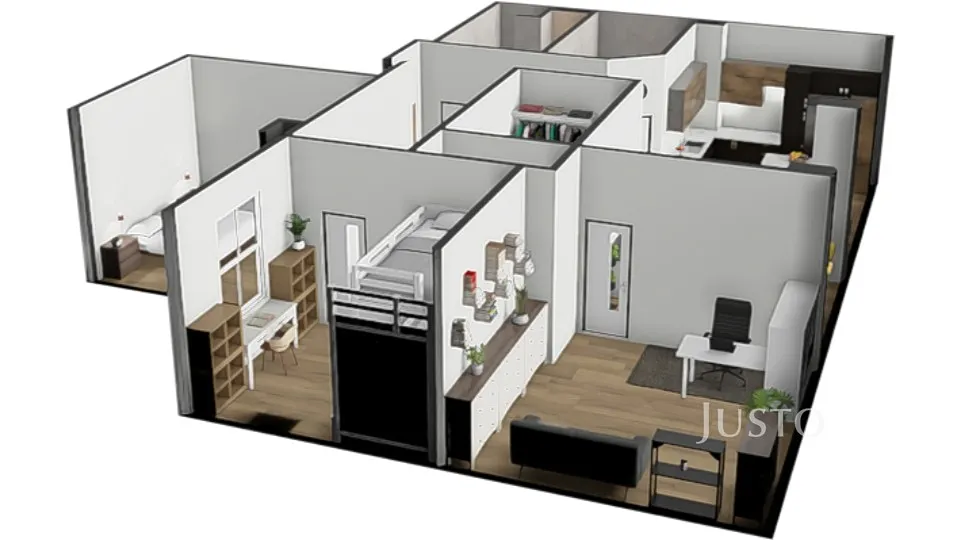 Tři samostatné a prostorné ložnice / pokoje – 16,5 m² + 12,2 m² + 11,4 m². Ideální zónové rozdělení pro maximální soukromí každého člena domácnosti.