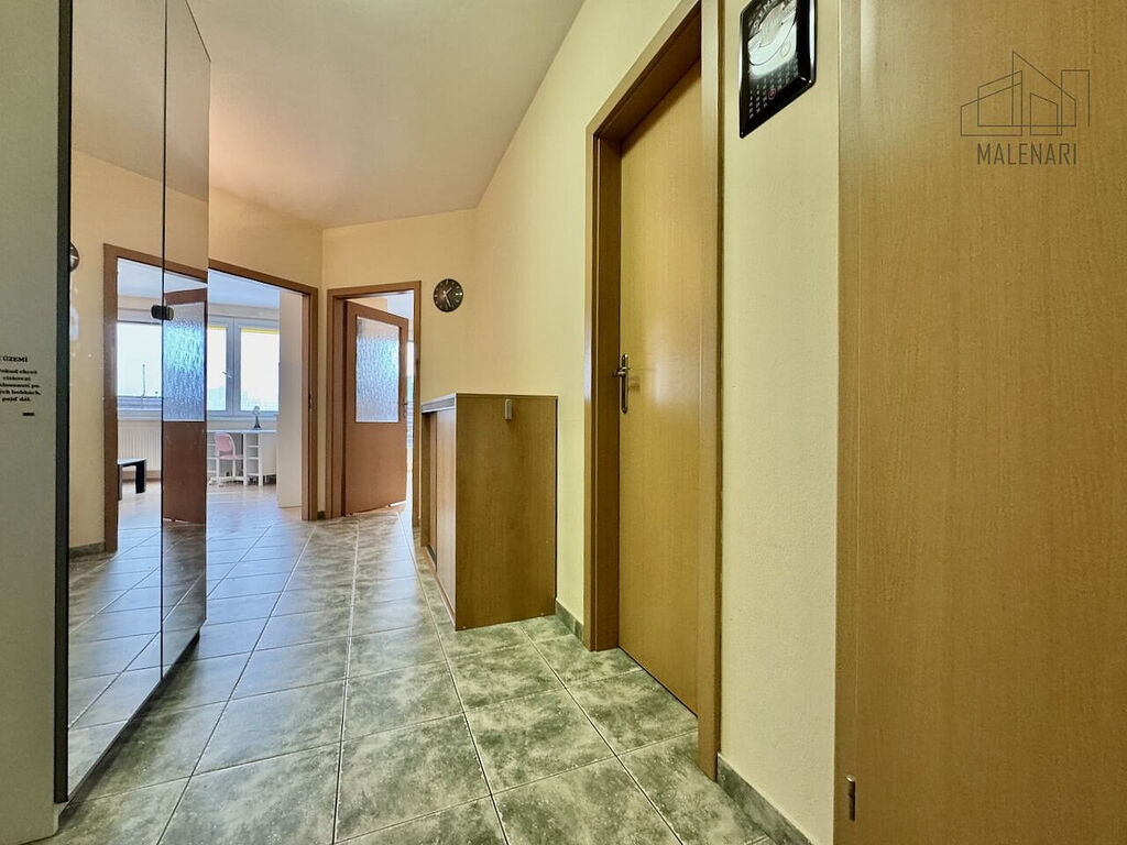 Byt má velmi prostornou vstupní halu (cca 9,13 m²), ze které je vstup do obývacího pokoje (cca 11,07 m²) s kuchyňským koutem (cca 5,86 m²), do ložnice (cca 9,84 m²), koupelny (cca 4,47 m²)), samostatné toalety (cca 1,58 m²) a komory (cca 1,5 m²). Z obývacího pokoje je vstupu na terasu (cca 4,38 m²), ze které je hezký výhled s JV orientací. Byt je ve velmi dobrém stavu s možností rychlého nastěhování.
