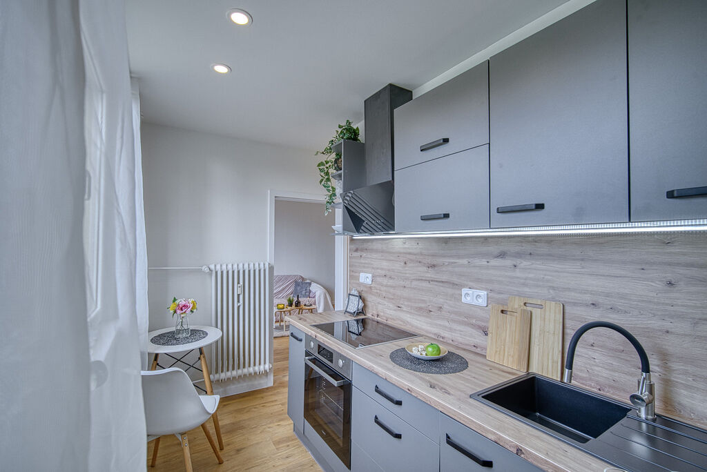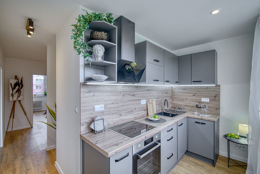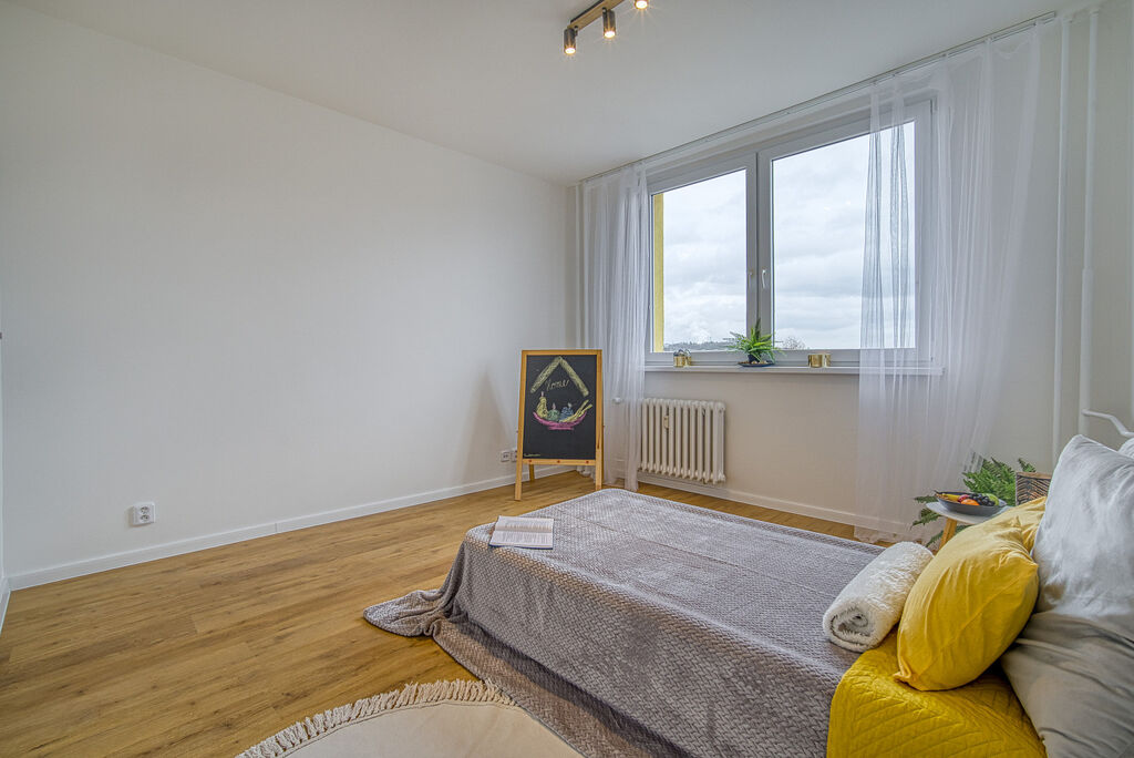 Nabízíme k pronájmu krásný byt 3+1, po kompletní rekonstrukci. Byt se nachází v 6. nadzemním podlaží (5. patře) panelového domu a disponuje novou kuchyňskou linkou se sklokeramickou varnou deskou, elektrickou pečící troubou, myčkou a digestoří. V koupelně se nachází sprchový kout, umyvadlo se skříňkou, koupelnová skříňka se zrcadlem a toaleta. Součástí pronájmu je i komora ve společných prostorách domu. Byt není vybaven nábytkem. Nájemné zde činí 13 500,- Kč, záloha na služby 2 500,- Kč pro 1 osobu + 500,- Kč každá další osoba. Vratná kauce je 25 000,- Kč. Při rezervaci se platí provize realitní kanceláři ve výši 16 000,- Kč. Elektřina se přepisuje na nájemce. Byt je volný ihned. V případě zájmu o prohlídku či více informací neváhejte kontaktovat makléře.