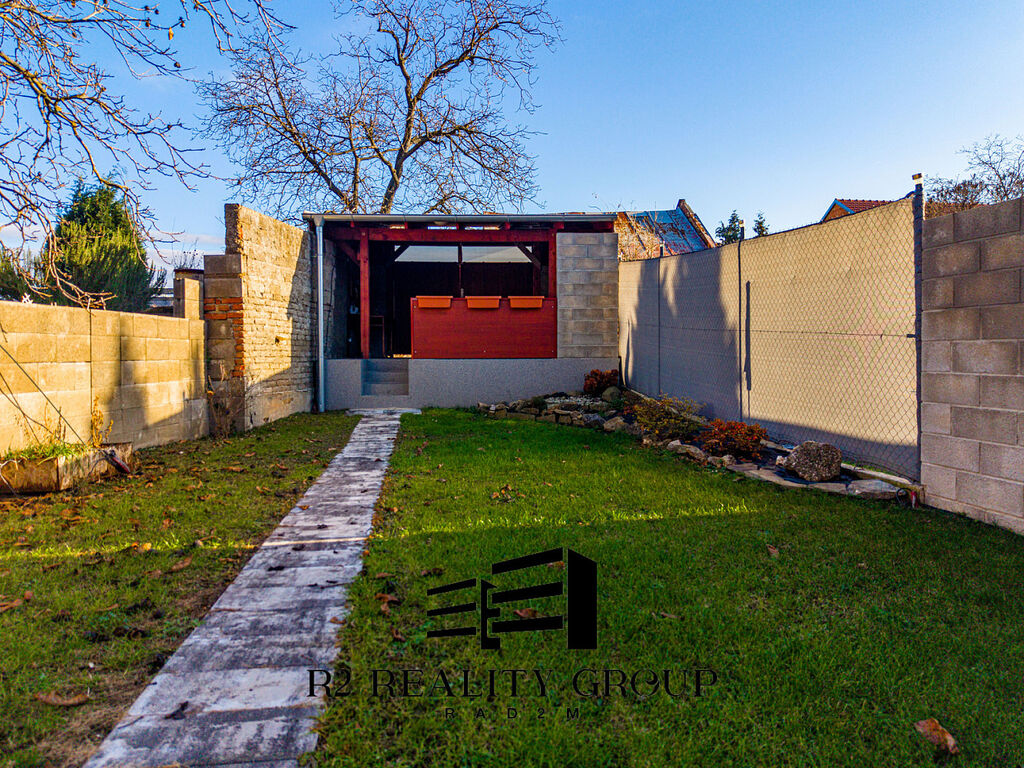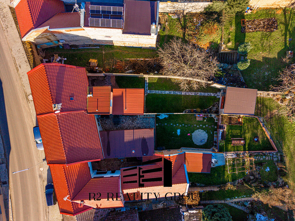 Na zahradě je technická místnost, otevřený zahradní domek s přístřeškem a k domu náleží také prostorná stodola.