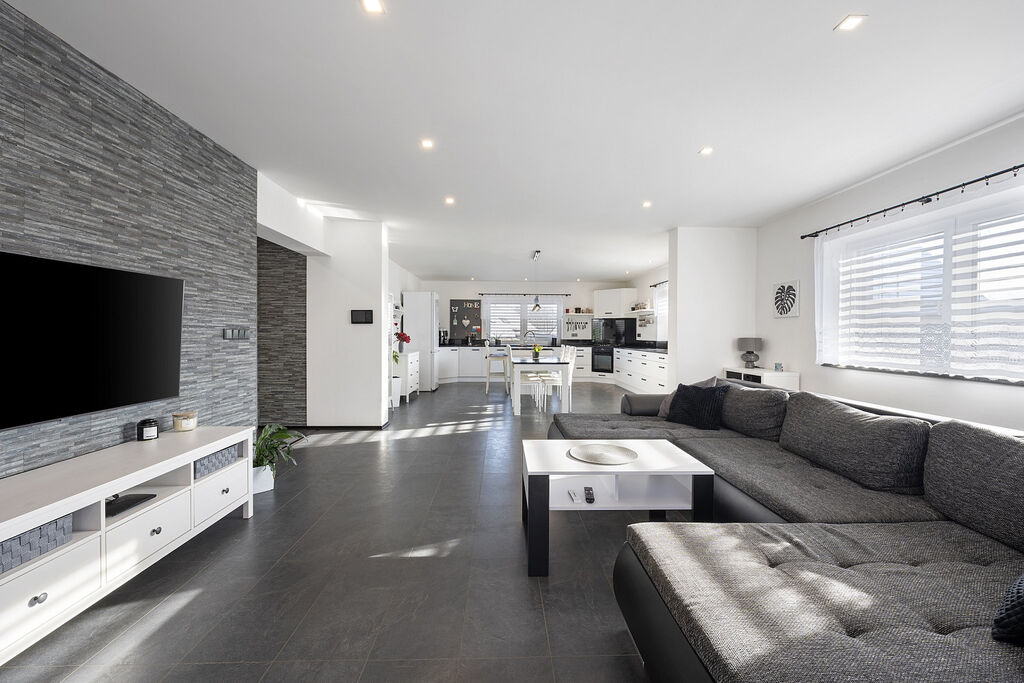 Další úspora při provozu domu je zajištěna například využíváním užitkové vody z vrtané studny. Nemovitost je samozřejmě napojena i na obecní vodovod a dále na kanalizaci.