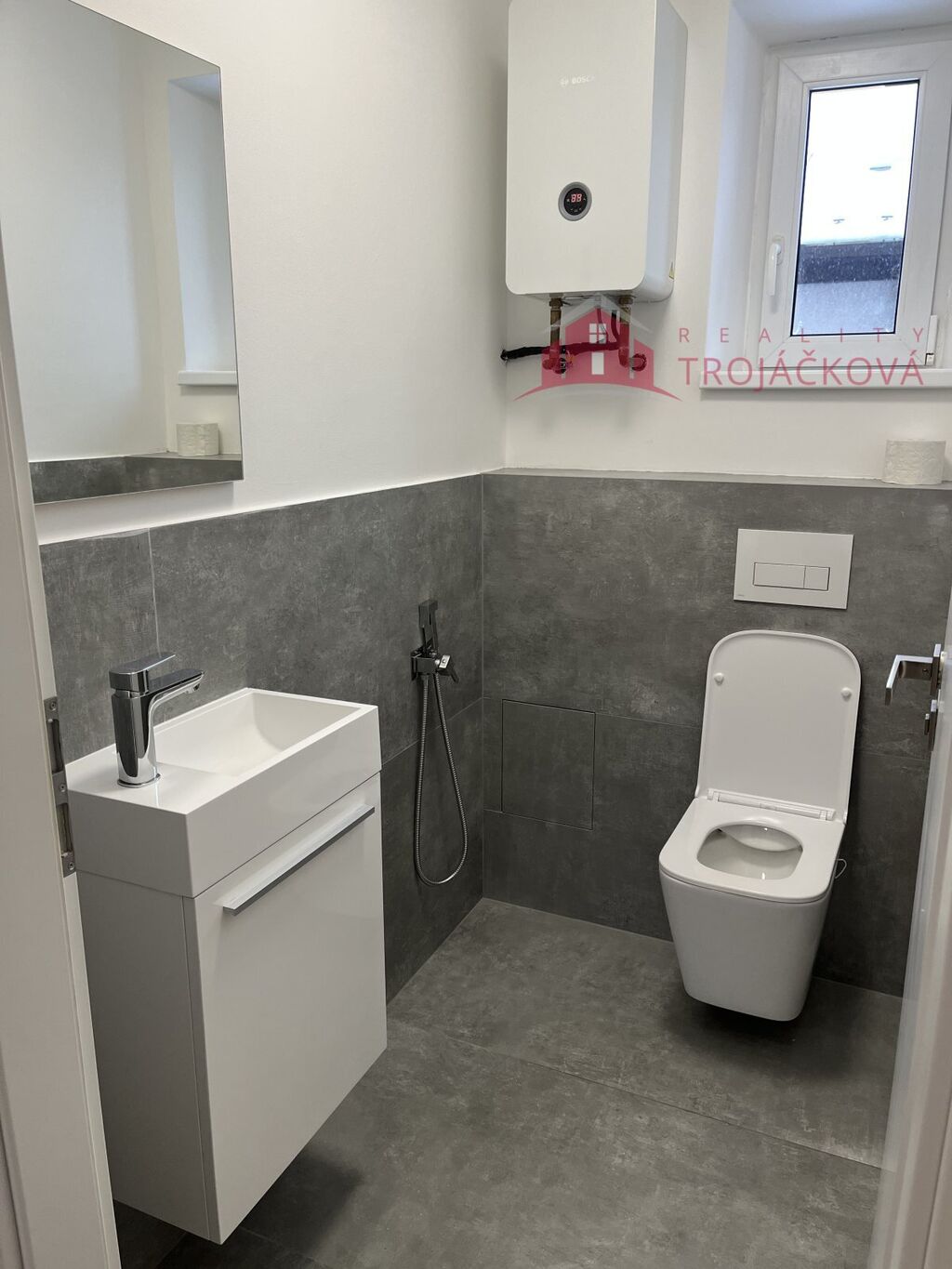 Nabízíme k pronájmu byt 3+ kk s lodžií v rodinném domě v obci Frenštát pod Radhoštěm. Byt je po kompletní rekonstrukci. Jedná se o dvoupodlažní rodinný dům umístěný v zahradě v klidné části města. Dům prochází rekonstrukcí, kdy je plánováno rozdělení na 2 samostatné jednotky pod vlastním uzamčením. Každá jednotka má svůj vchod. Byt je umístěný v 1. patře, kde se nachází částečně vybavená bytová jednotka o velikosti 3+ kk o rozloze 90 m² + lodžie (10,7 m2), který nabízí příjemné bydlení ideálně pro 2– 3 osoby. Do bytu se vchází přes prostorné zádveří, kde je vestavěná skříň. Kuchyň je propojena s velkým obývacím pokojem, který je vybaven rohovou sedačkou, konferenčním stolkem a komodou pod TV. Kuchyňská linka je s vestavěnými spotřebiči (sporák se sklokeramickou deskou s el. troubou, myčkou a digestoří). Z obývacího pokoje je vstup na prostornou lodžii, která nabízí příjemné posezení. Koupelna má vanu i sprchový kout a je vybavena koupelnovým nábytkem. Součástí koupelny je WC a bojler na ohřev vody. Další WC je samostatné. Ložnice a další pokoj jsou neprůchozí. Podlahy jsou vinylové, v koupelně je dlažba. V celém bytě je podlahově vytápění. K pronájmu náleží vyhrazené stání pro 1 auto. Byt nabízíme k dlouhodobému pronájmu.