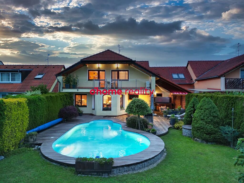 Skvostem této nemovitosti je však nádherná a pečlivě udržovaná zahrada s rozlehlým zapuštěným bazénem a luxusní kanadskou vířivkou. Tato oáza klidu je perfektním místem pro letní grilování, relaxaci na sluníčku nebo večerní posezení u sklenky vína s přáteli.