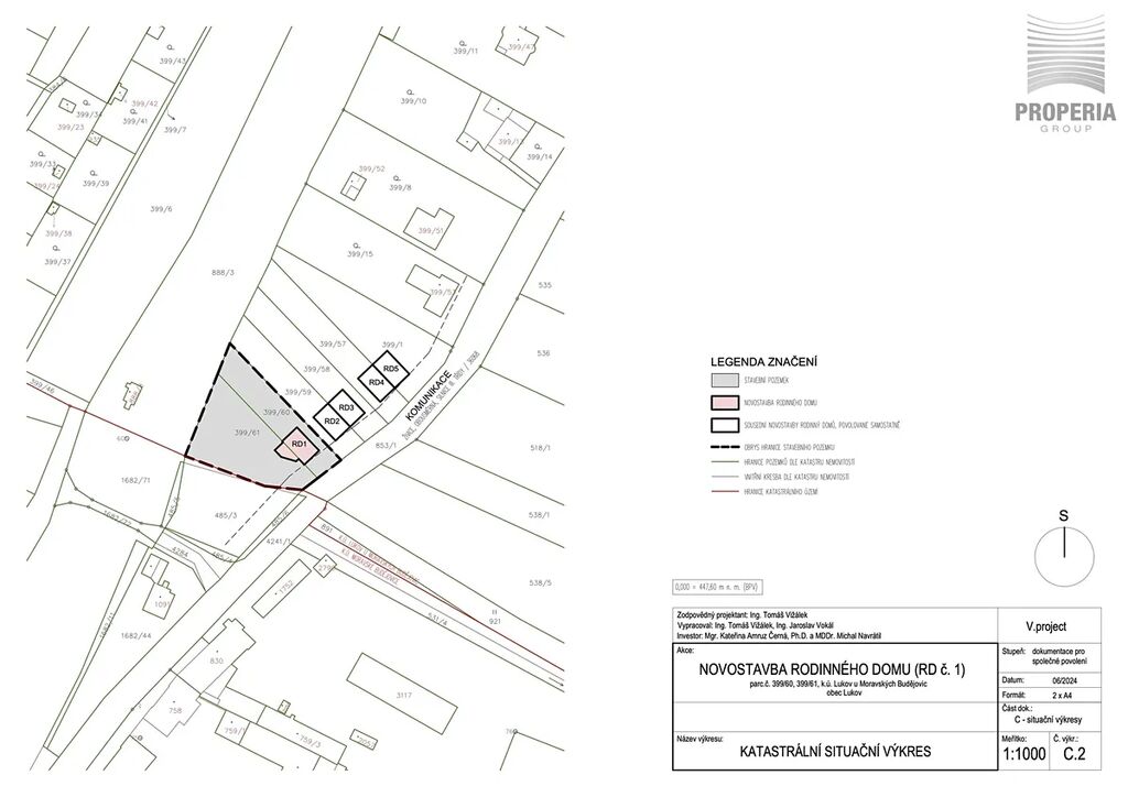 4 pozemky pro polořadové domy (RD č.2, RD č.3, RD č.4, RD č.5)