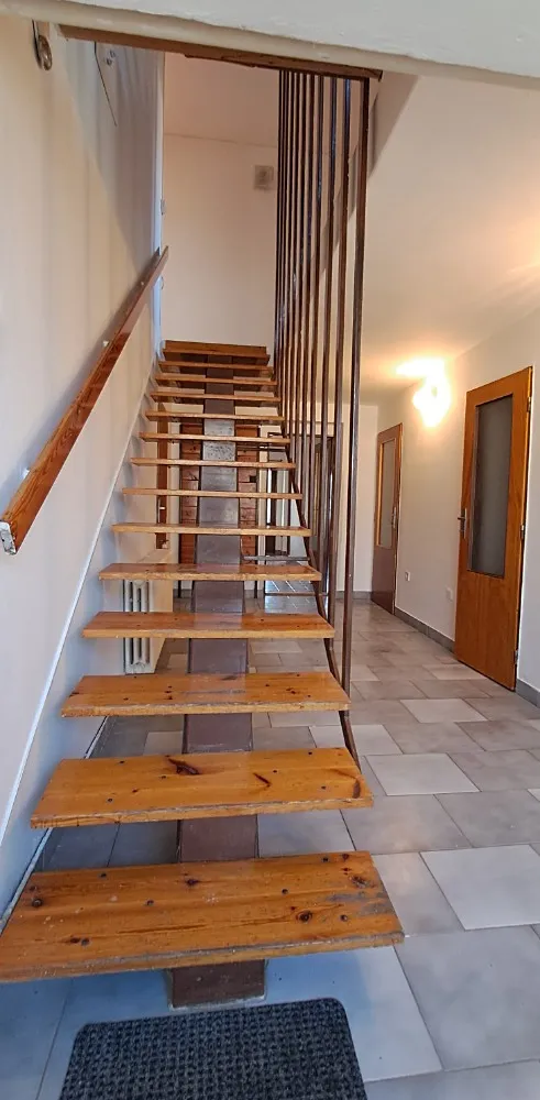 2.NP - ze schodiště je vstup do bytu o velikosti 3+1. Z chodby je vstup na balkon, samostatné wc, do spíže a do kuchyně s jídelnou. V kuchyni je kuchyňská linka s myčkou a elektrickou troubou. Z kuchyně je vstup do pokoje s krbem, odkud je vstup na balkon. Komín je vyvložkovaný a vyčištěný, v komíně je krbová vložka na topení tuhými palivy. Z chodby je vstup do dalších dvou pokojů a do koupelny, která byla zrekonstruovaná před pár lety.