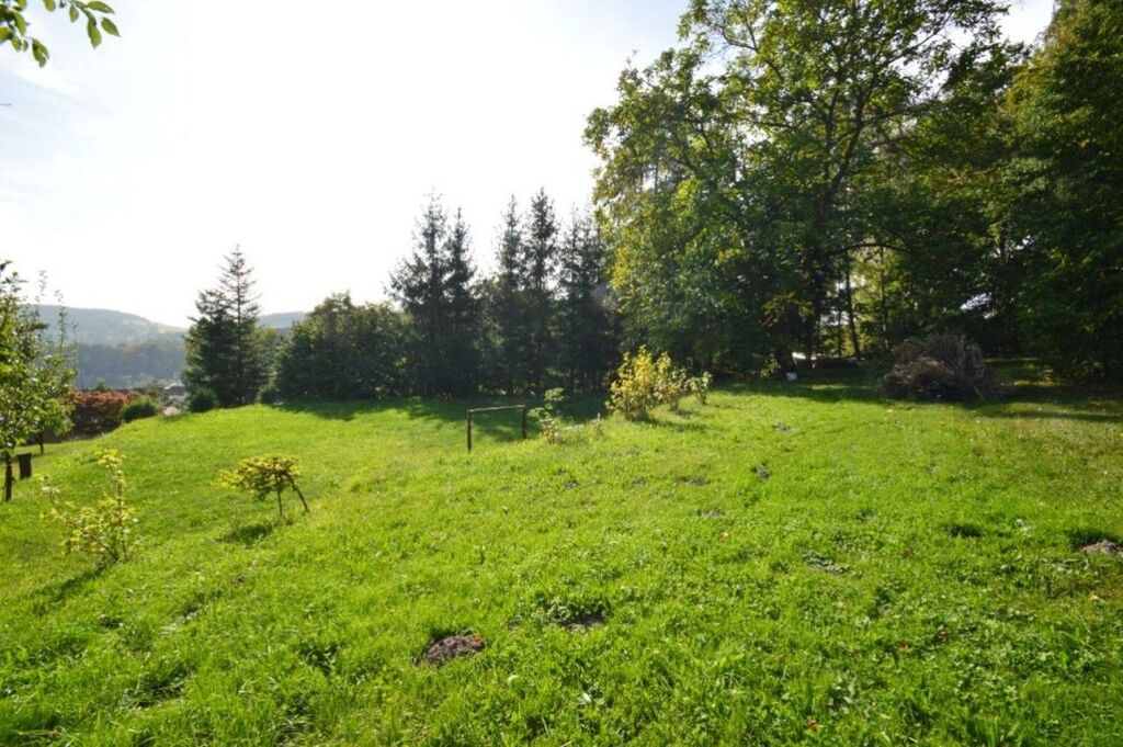 Na pozemku stojí kůlna dřevo, vedle ní je branka do lesa a několik ovocných stromů. Po vnějším obvodu je nové oplocení. Pozemek je převážně v rovinatý.