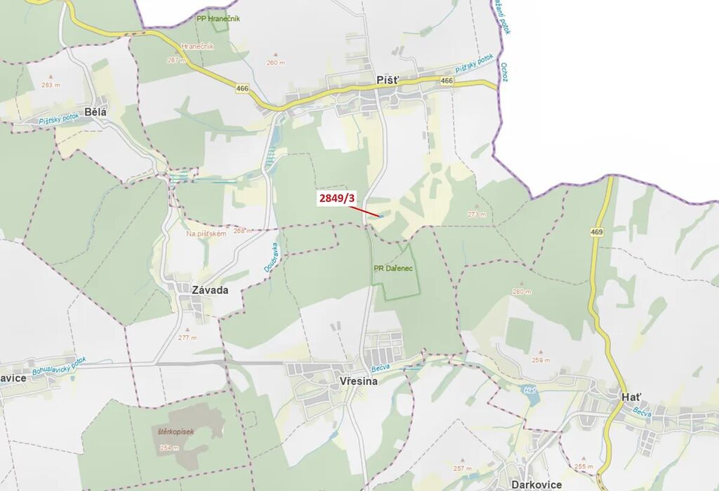 Lesní pozemek o výměře 1130 m2, parcelní číslo 2849/3, podíl 1/1, katastrální území Píšť, obec Píšť, obec s rozšířenou působností Hlučín, okres Opava, Moravskoslezský kraj.