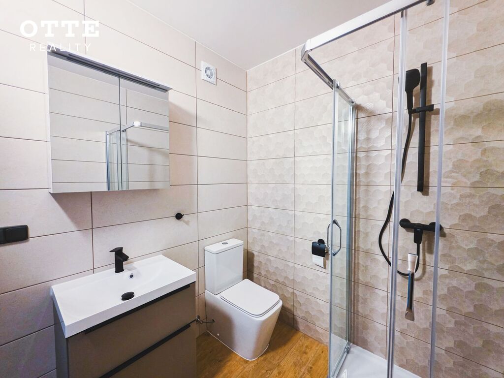 Byt je dispozičně rozdělen na tři obytné pokoje, kuchyň, koupelnu, chodbu a technickou místnost. V kuchyni je nová moderní kuchyňská linka, která je vybavena vestavěnými spotřebiči jako je sklokeramická varná deska, elektrická trouba, digestoř, mikrovlnná trouba, myčka na nádobí a samostatně stojící lednice s mrazákem. V kuchyni je dostatek prostoru i pro jídelní kout. Moderní designová koupelna je vybavena sprchovým koutem, umyvadlem, koupelnovým nábytkem a toaletou, je zde také příprava a místo pro umístění pračky. V ložnici je praktická šatna. V celém bytě jsou stropní svítidla, podlahy jsou laminátové plovoucí nebo dlažby v příjemných barvách a dekorech a nové dveře. Do bytu je přiveden internet a TV. Společné prostory jsou čisté a udržované. Byt je útulný a působí svěžím a moderním dojmem. Teplo a ohřev vody zajišťuje vlastní kondenzační kotel umístěný přímo v bytě. Parkování je možné na veřejných parkovacích místech přímo před objektem nebo v postranních ulicích.