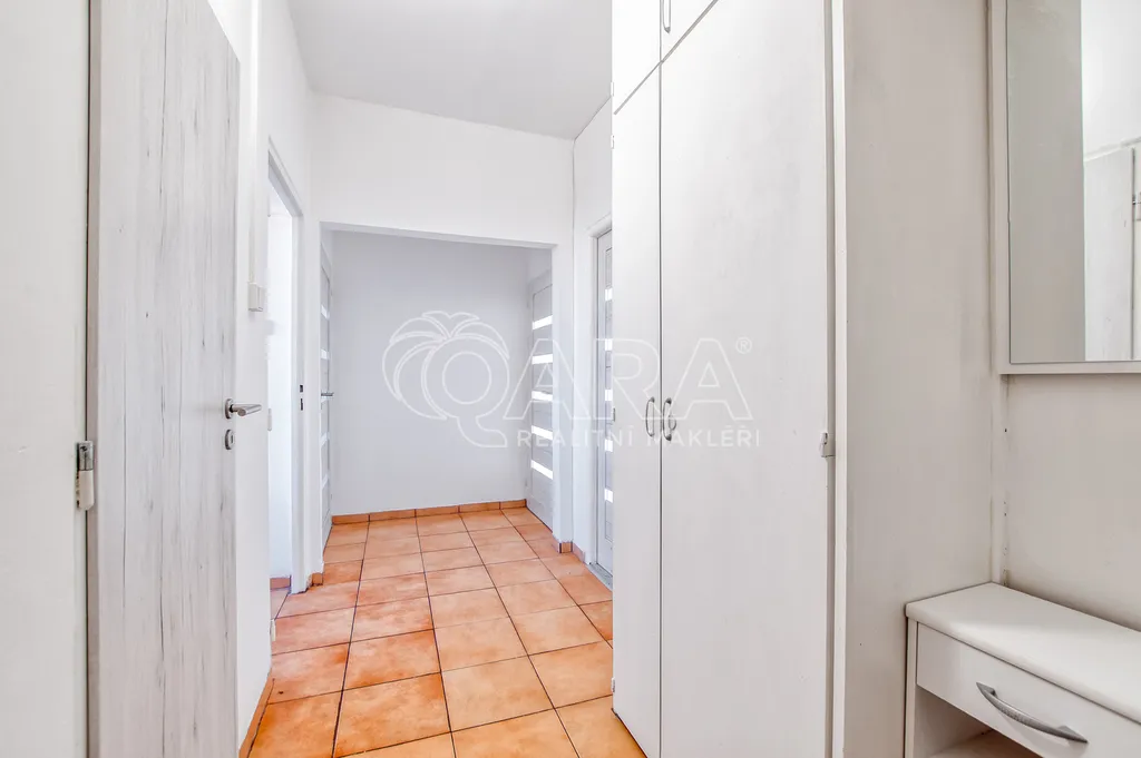 V obývacím pokoji jistě využijete praktický výklenek, který je ideální pro vytvoření pracovního koutku, šatny nebo relaxační zóny. Další výhodou je lodžie orientovaná na východní stranu. Prostornou kuchyň můžete pohodlně vybavit jídelním stolem. Kuchyňská linka je vybavena elektrickou troubou s plynovou deskou a k dispozici je také velká spíž pro uskladnění potravin. V předsíni najdete vestavné šatní skříně s věšákem a zrcadlem.
