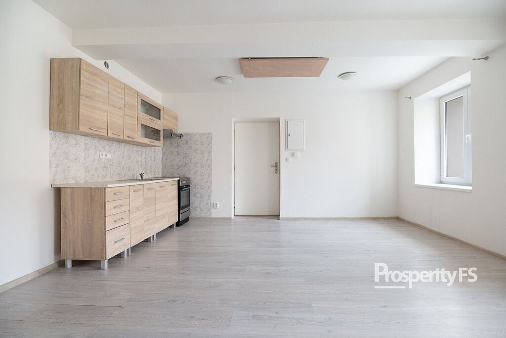 V přízemí zrekonstruovaného domu nabízíme ateliér o dispozici 1+kk a výměře 33m². V domě se nachází celkem 4 bytové jednotky a 2 ateliéry. Ve zvýšeném přízemí zatepleného domu naleznete útulný ateliér připravený k nastěhování či pronájem.
