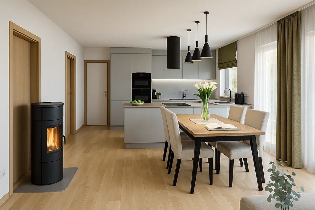 Tento samostatný dům s pozemkem 625m2 je dispozičně řešený jako 4+kk v nadstandardním provedení-dřevěné podlahy s podllahovým vytápěním, luxusní keramická dlažba a obklady, moderní sanita a baterie, umyvadlové skříňky, perfektní plastová okna s trojsklem a sedmikomorovým rámem, interiérové dvěře výšky 210cm, tepelné čerpadlo vzduch-voda, krbová kamna, příprava na fotovoltaiku, příprava na alarm. Praktické dispozičí řešení se třemi ložnicemi, koupelnou s vanou a toaletou a druhou koupelnou, přiléhající k hlavní ložnici, se sprchovým koutem. K samostatné ložnici patří také šatna. Velkou výhodou je úložný prostor cca 20m2 v podkroví. Developer klade důraz na nízkoeenergetickou náročnost domu. Rádi Vám zprostředkujeme prohlídku.