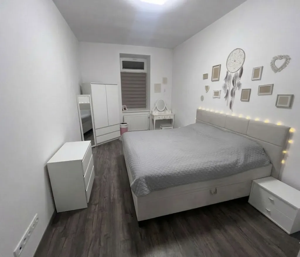 Byt má praktické uspořádání – prostorný obývací pokoj, samostatnou ložnici a kuchyň s kompletně vybavenou linkou (varná deska, trouba, myčka, lednice). Koupelna je vybavena vanou, umyvadlem a toaletou, což ocení zejména rodiny s dětmi či ti, kteří si rádi dopřejí pohodlnou koupel. Díky umístění v přízemí je byt navíc ideální pro ty, kteří preferují snadnou dostupnost bez schodů.