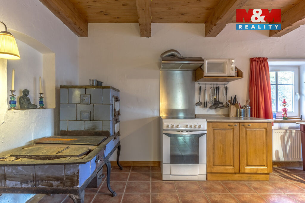 Nabízíme k prodeji krásnou chalupu v horské vesnici Horní Tříč, spadající pod Vysoké nad Jizerou. Nemovitost prošla nákladnou rekonstrukcí a je připravená ihned a bez dalších investic pro nového majitele. V přízemí jsou dvě hlavní místnosti s kachlovými resp. krbovými kamny, terasa, mezonetová ložnice a koupelna s toaletou. V patře byl vybudován vzdušný obývací pokoj, ložnice a koupelna s toaletou. K domu je přistavěna dřevěná stodola s parkováním pro dva vozy. Dům je částečně podsklepený. Zde se nachází dílna s technickou místností a menší sauna. Objekt pojme i velkou rodinu, je vhodný jak k rekreaci, tak k pronajímání, mnoho ski areálů a turistických cílů v těsné blízkosti.