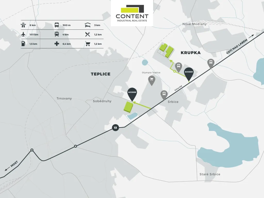V zastoupení majitele a bez provize nabízíme kvalitní industriální prostory vhodné pro sklad nebo výrobu, umístěné v moderním komerčním parku, v těsné blízkosti dálnice D8 a německých hranic.
