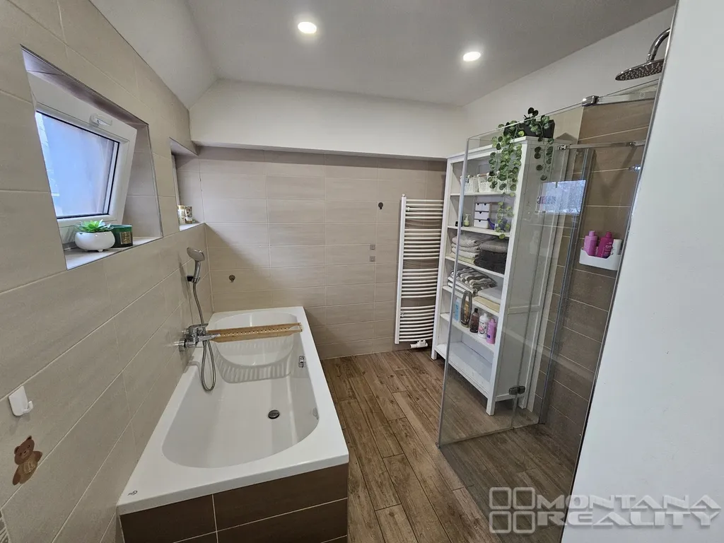 V patře se nachází dvě samostatné ložnice, prostorná chodba využívaná jako herna pro děti, malá koupelna s WC a úložný prostor. Na chodbě jsou nachystané rozvody na instalaci kuchyňské linky což by umožnilo dům využívat dvougeneračně.