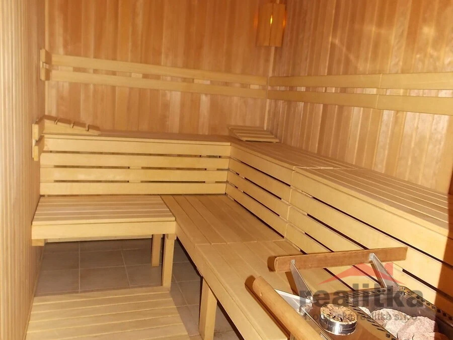 Wellness: finská sauna, vířivka 6 osob, ochlazovací bazének.