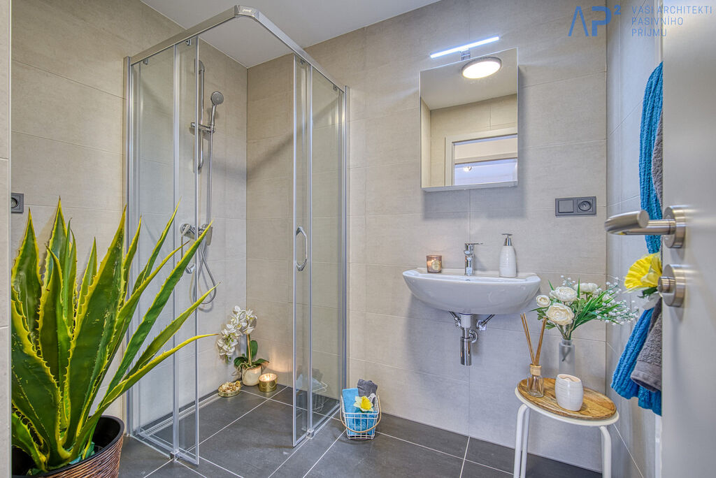 Byt je zcela nový, máte tedy jedinečnou příležitost stát se prvními obyvateli tohoto nádherného bytu. K dispozici je zde moderní kuchyňská linka s vestavěnou myčkou nádobí, ledničkou, mikrovlnkou, elektrickou varnou deskou, elektrickou pečící troubou a digestoří. V koupelně se nachází sprchový kout, umyvadlo a zrcadlová skříňka s osvětlením. Součástí pronájmu jsou také 2 sklepy a kryté parkovací stání č. 21, které je v ceně pronájmu. Byt bude pronajímán bez nábytku a dekorací.