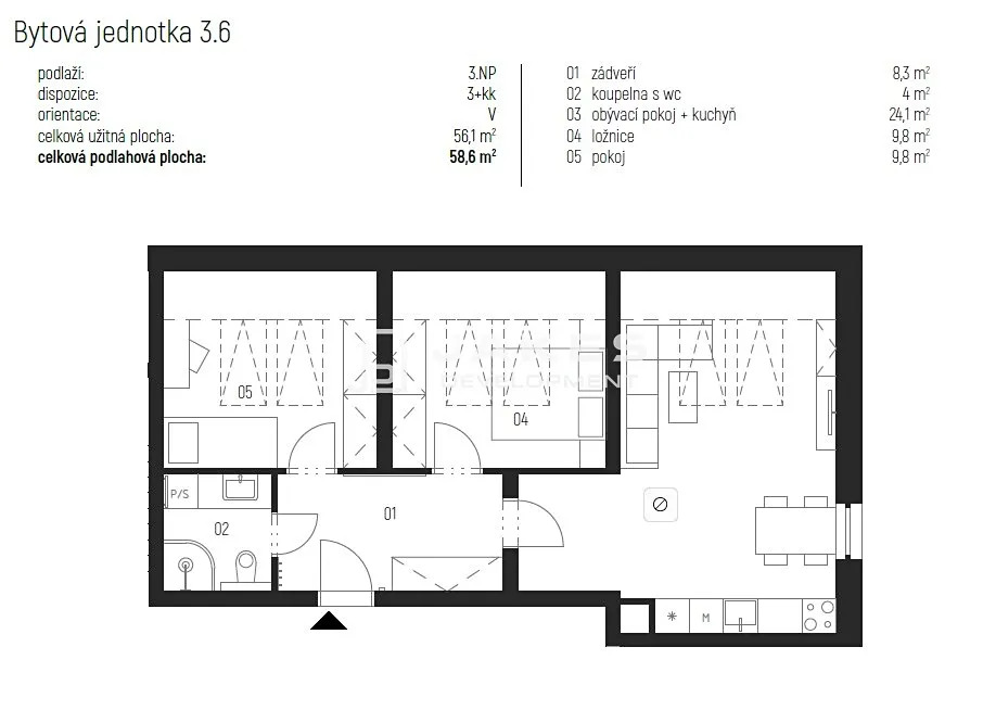Byt je navržen s důrazem na moderní standardy bydlení a komfort: