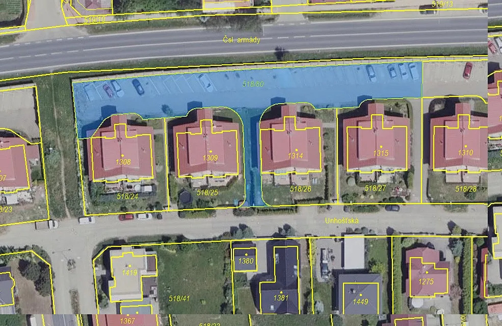 Jako přímý vlastník nabízím na prodej 8 parkovacích stání ve městě Hostivice (k.ú. Litovice) v ulici Unhošťská v těsné blízkosti Prahy poblíž letiště Václava Havla. Každé parkovací stání má plochu cca 15m2 a je prostorné (vejde se i velké SUV). Jedná se o podílové vlastnictví na pozemcích č. 518/79 a 518/80. Přímo u parkovacích stání jsou bytové domy.
