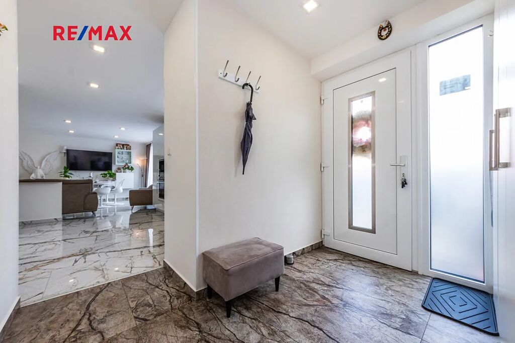 Terasa je jedním z hlavních benefitů této nemovitosti. Díky zastřešení ji lze využívat za každého počasí. V současnosti je zde umístěna vířivka a pohodlné venkovní posezení – ideální místo pro relaxaci nebo letní grilování s rodinou a přáteli.