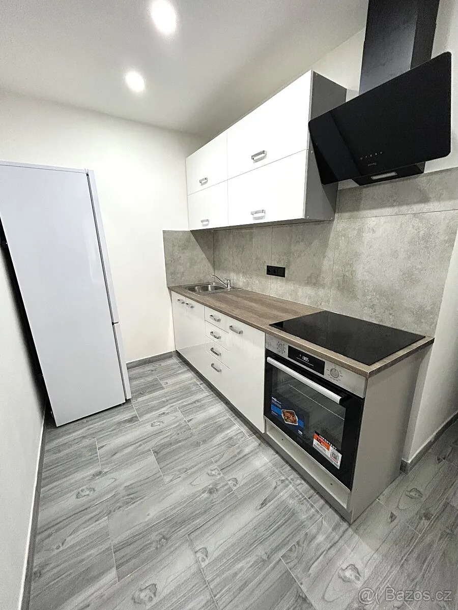 Byt je zařízený. Kuchyň je vybavená kuchyňskou linkou a elektrospotřebiči.