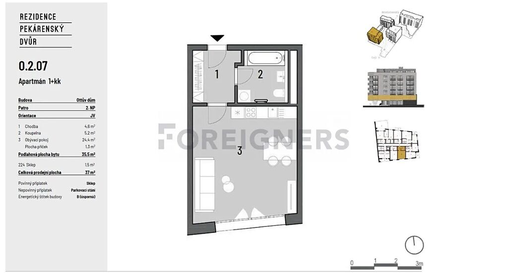 Nabízíme k pronájmu moderní ateliér 1+kk, který se nachází v novém rezidenčním projektu Pekárenský dvůr, Blok Ottúv dům, na ulici Bratislavská v Brně.