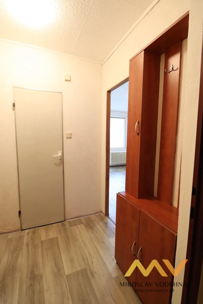 Pěkný, velice udržovaný, čistý a útulný byt s odděleným kuchyňským koutem vybavený pěknou kuchyňskou linkou s el. sporákem, jídelním barovým stolem. V obývacím pokoji pracovní stůl, vyklápěcí dvoulůžko. Bytové jádro je umakartové, koupelna je se sprchovým koutem (minivana), WC. V předsíni vestavěné skříně. Podlahová krytina PVC. K bytu náleží na patře umístěná komora s regály nahrazující sklep (vhodné i pro kolo), v domě kolárna. K bytu náleží prostorná zasklená lodžie 7 m2. Parkování volné před domem bez poplatku, MHD, plná občanská vybavenost, v okolí domu zeleň.