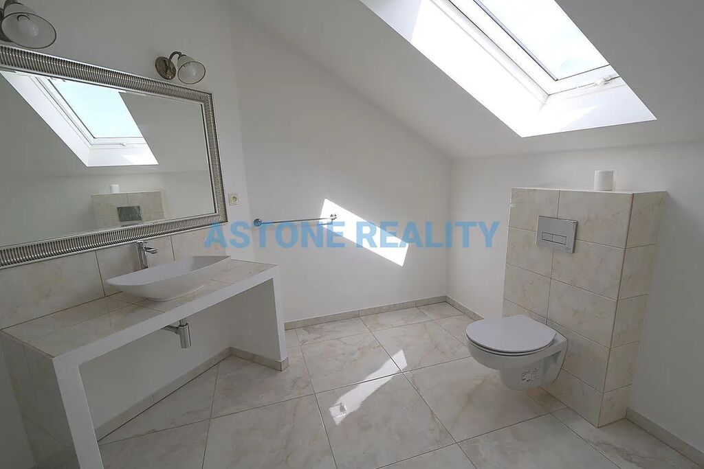 Nabízíme Vám k prodeji krásný, dvoupodlažní rodinný dům 7+kk se třemi balkony a dvougaráží v obci Trnová, pouze několik kilometrů od Prahy. Prostorný, zděný dům z roku 2017 s obytnou plochou 318 m2 se nachází na zcela rovném, oploceném pozemku o celkové ploše 1.674 m2. Dispoziční řešení: v přízemí je vstupní hala, kuchyně s velkým obývacím pokojem, koupelna s masážním sprchovým koutem a toaletou, ložnice a technická místnost s kotlem a vstup přímo do garáže, v prvním patře se nachází čtyři samostatné ložnice se dvěma koupelnami, jedna s rohovou vanou, druhá se sprchovým koutem, pracovna, dvě úložné komory a šatna. Plovoucí podlahy v kombinaci s velkoformátovou dlažbou, eurookna, bezpečnostní vstupní dveře. Dům je zabezpečen alarmem. Výborná dopravní dostupnost, busem 30 min na metro B Smíchov, nebo vozem po dálnici 20 min. V bezprostřední vzdálenosti je cyklostezka, restaurace, jezdecké centrum. Kompletní občanská vybavenost se nachází v nedalekém Jílovišti nebo v Měchenicích. Dům není zatížen žádnou zástavou, je k dispozici ihned. V případě zájmu o prohlídku nás prosím kontaktujte.