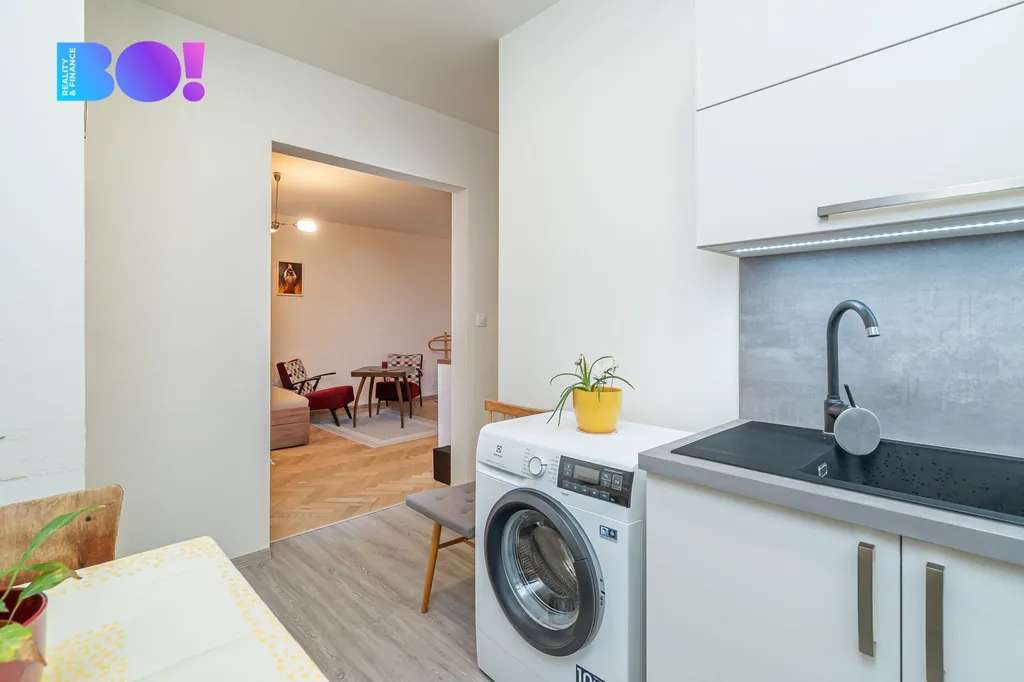 Byt prošel rekonstrukcí v roce 2020, v rámci které byla realizována výměna elektroinstalace, vodoinstalace, vybudována nová koupelna se sprchovým koutem, WC a umyvadlem. V chodbě jsou vybudované vestavné skříně, své místo má i pračka a sušička, kuchyňská linka byla zhotovena na míru s vestavěnými spotřebiči. V kuchyni a chodbě je nová plovoucí podlaha, v koupelně dlažba a v pokoji velmi zachovalé dřevěné parkety. Topení a ohřev vody je z dálkového zdroje. Byt je orientován na jižní světovou stranu, byt se nachází v přízemí panelového domu a náleží k němu i sklepní kóje.